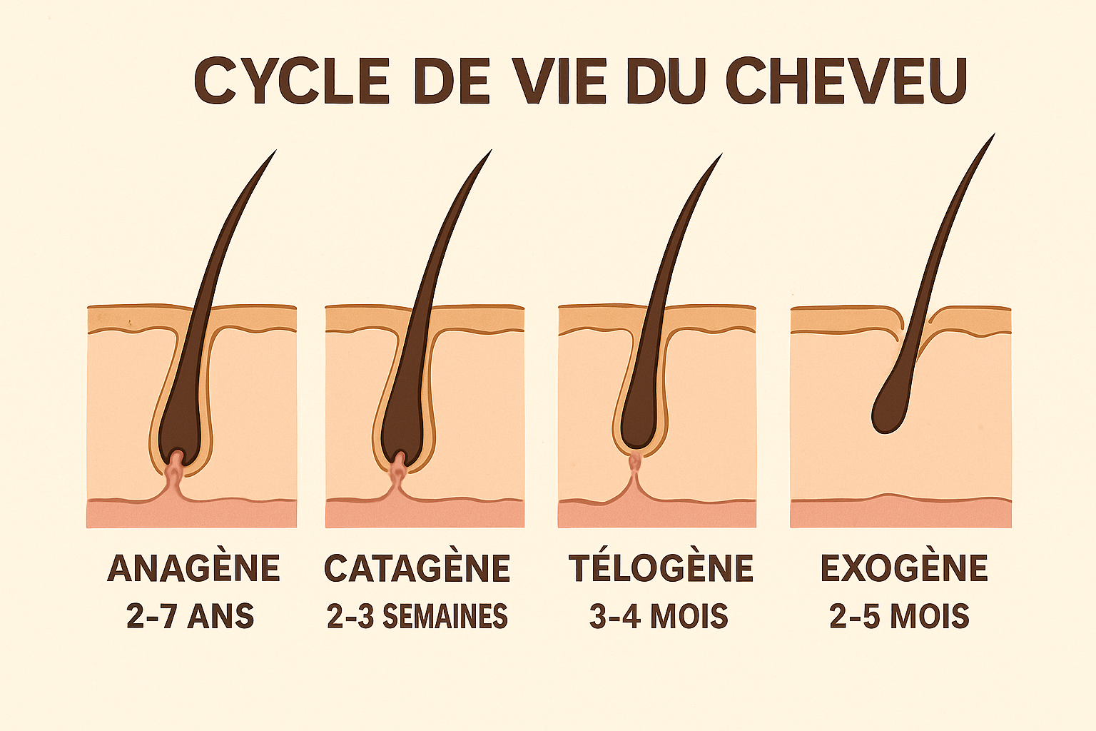 Les cheveux connaissent trois phases au cours desquelles leur croissance va varier :